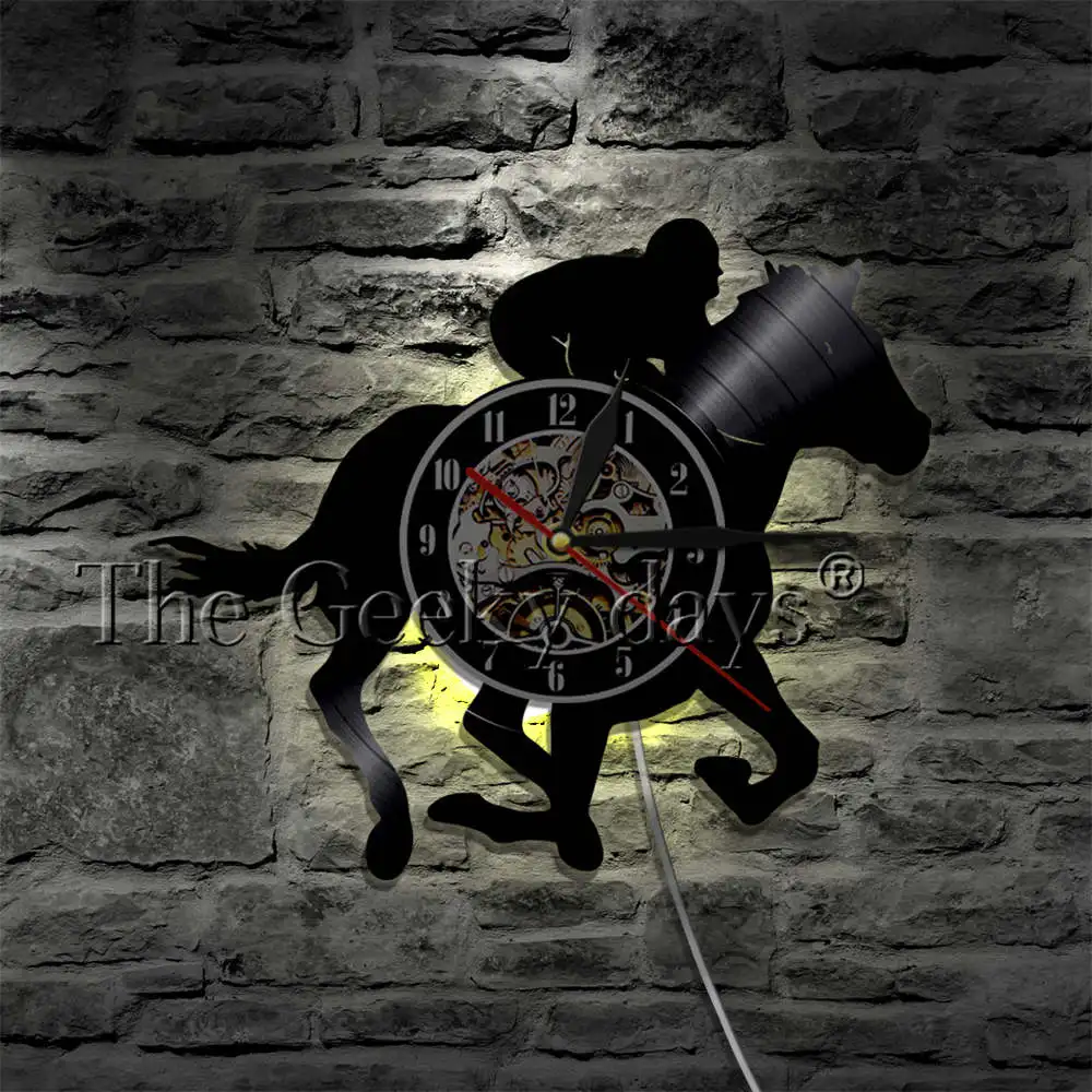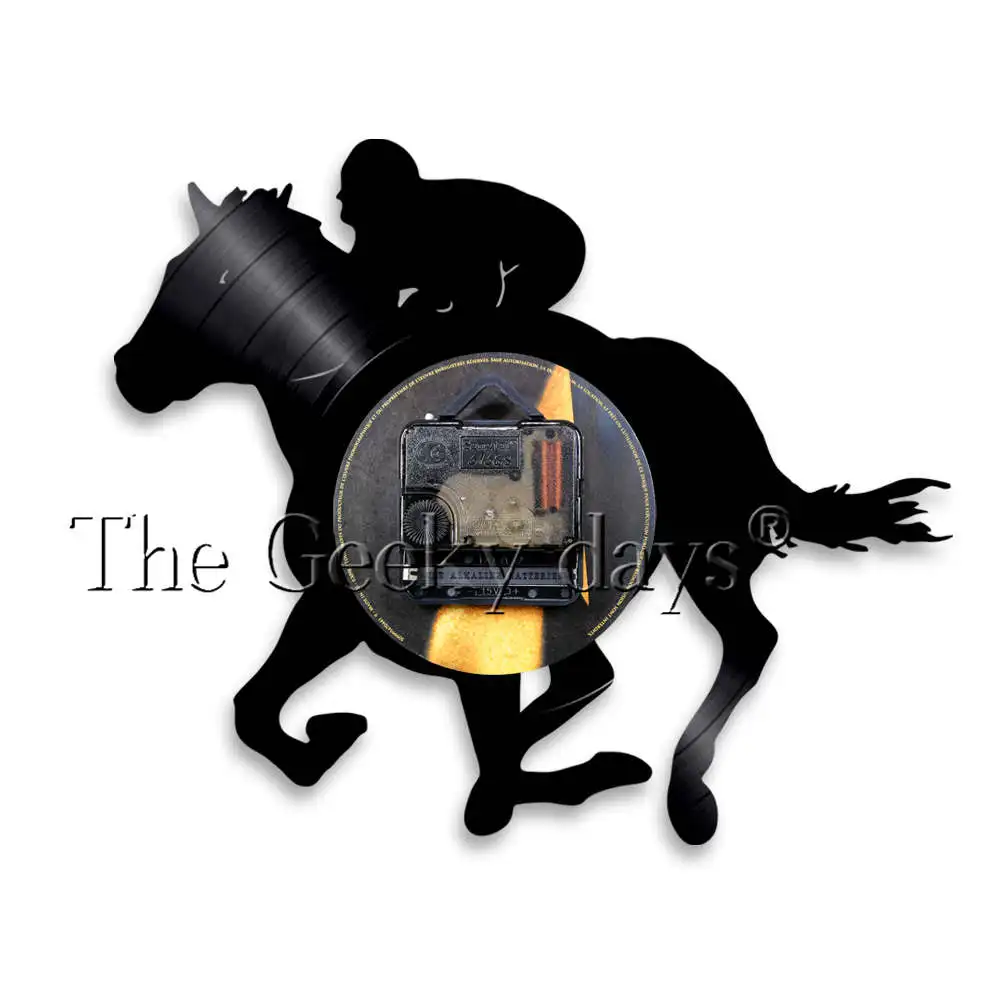 Comprar Ecuestre Reloj de pared moderno caballo pared del Vintage Horse Racing vinilo reloj Caballero regalo para los amantes del caballo Online Baratos