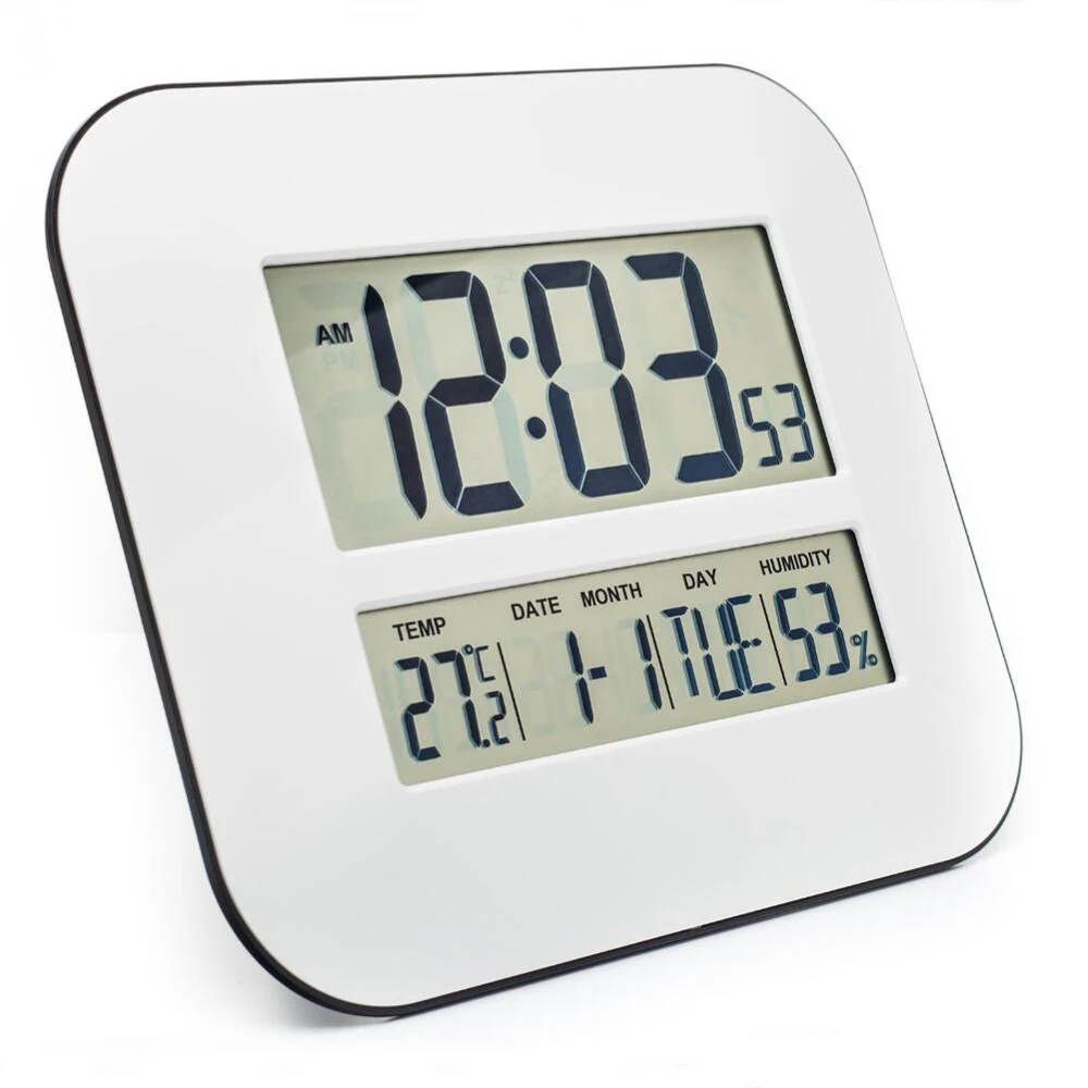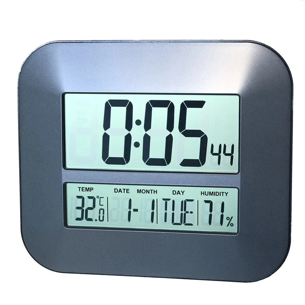 Comprar Reloj de pared Digital DCF Radio control Time RCC con termómetro de temperatura higrómetro de humedad reloj despertador decorativo de mesa Online Baratos.