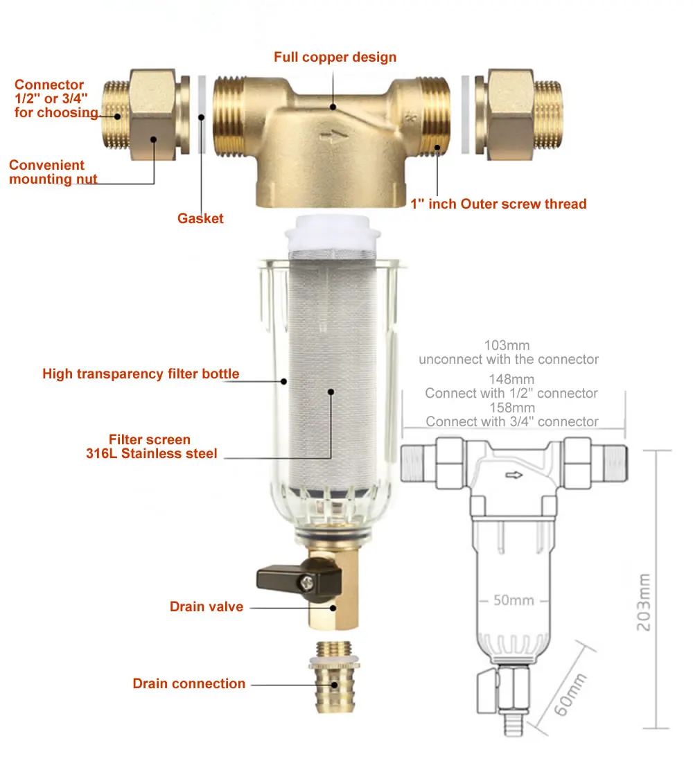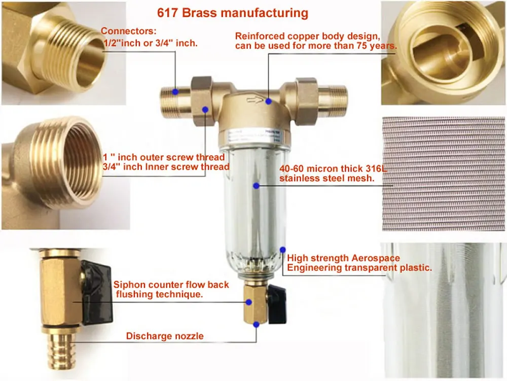 Comprar 1 2 \"pulgadas 3 4\" pulgadas 1 \"pulgadas puerto de cobre filtro Hogar Casa filtro de agua tubos de agua Central purificador descalcificación Online Baratos
