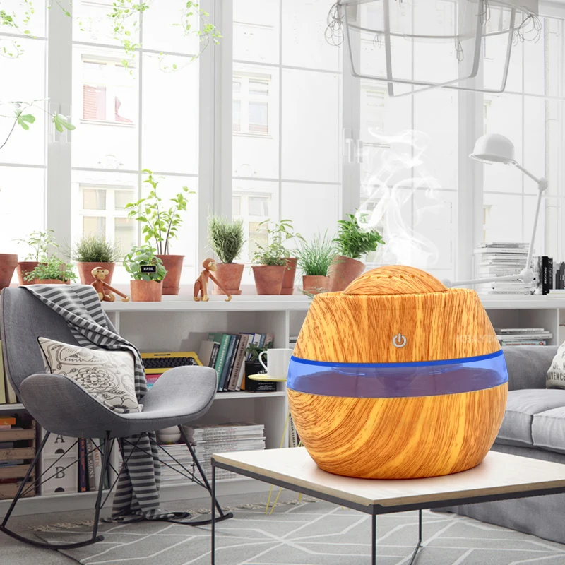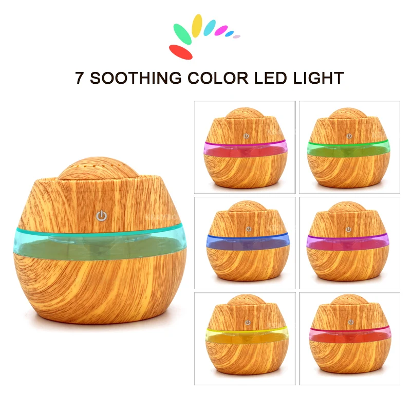 Comprar 300 ml Aroma de aceite esencial difusor ultrasónico humidificador fresco de la niebla de grano de madera con 7 Color LED luces de niebla Online Baratos.