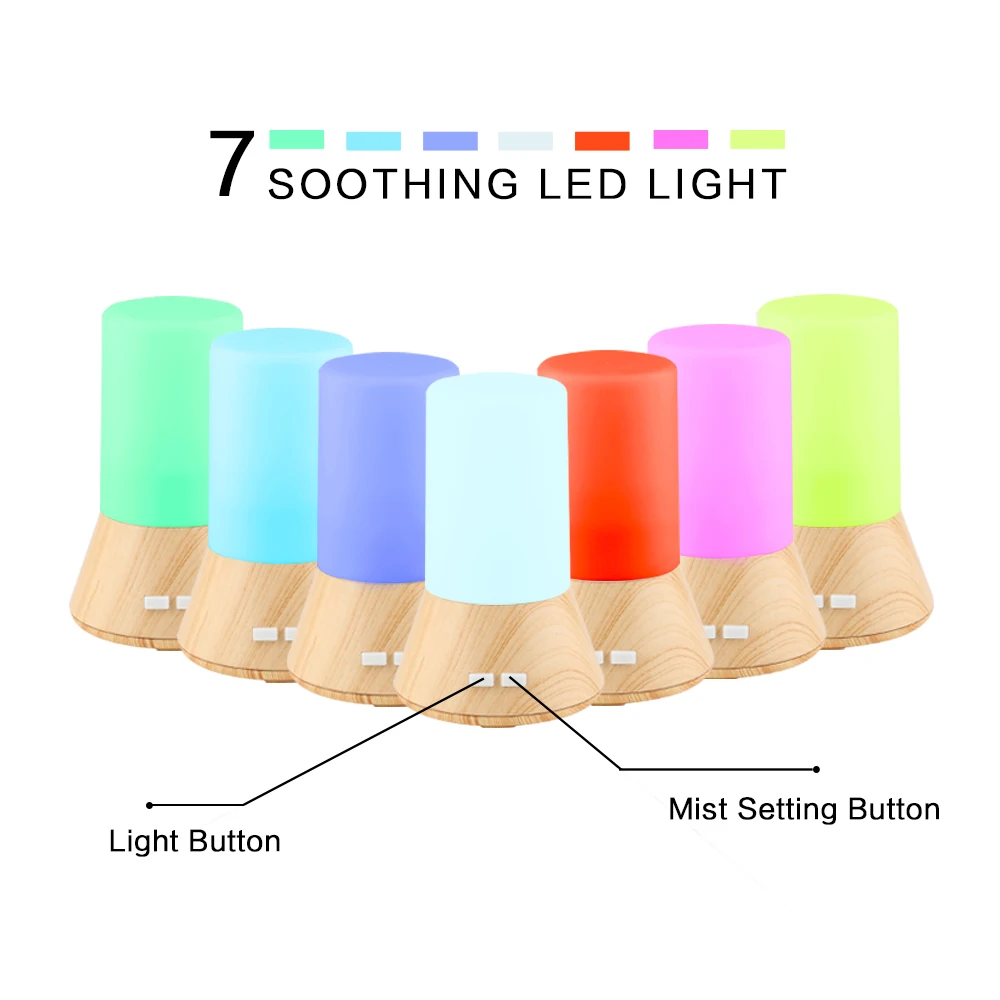 Comprar Difusor de aceite esencial con Aroma Bluetooth humidificador ultrasónico de aire con grano de madera 7 luces LED cambiantes de Color para el hogar de la Oficina 218 Online Baratos.