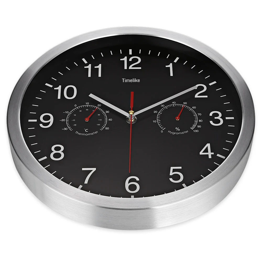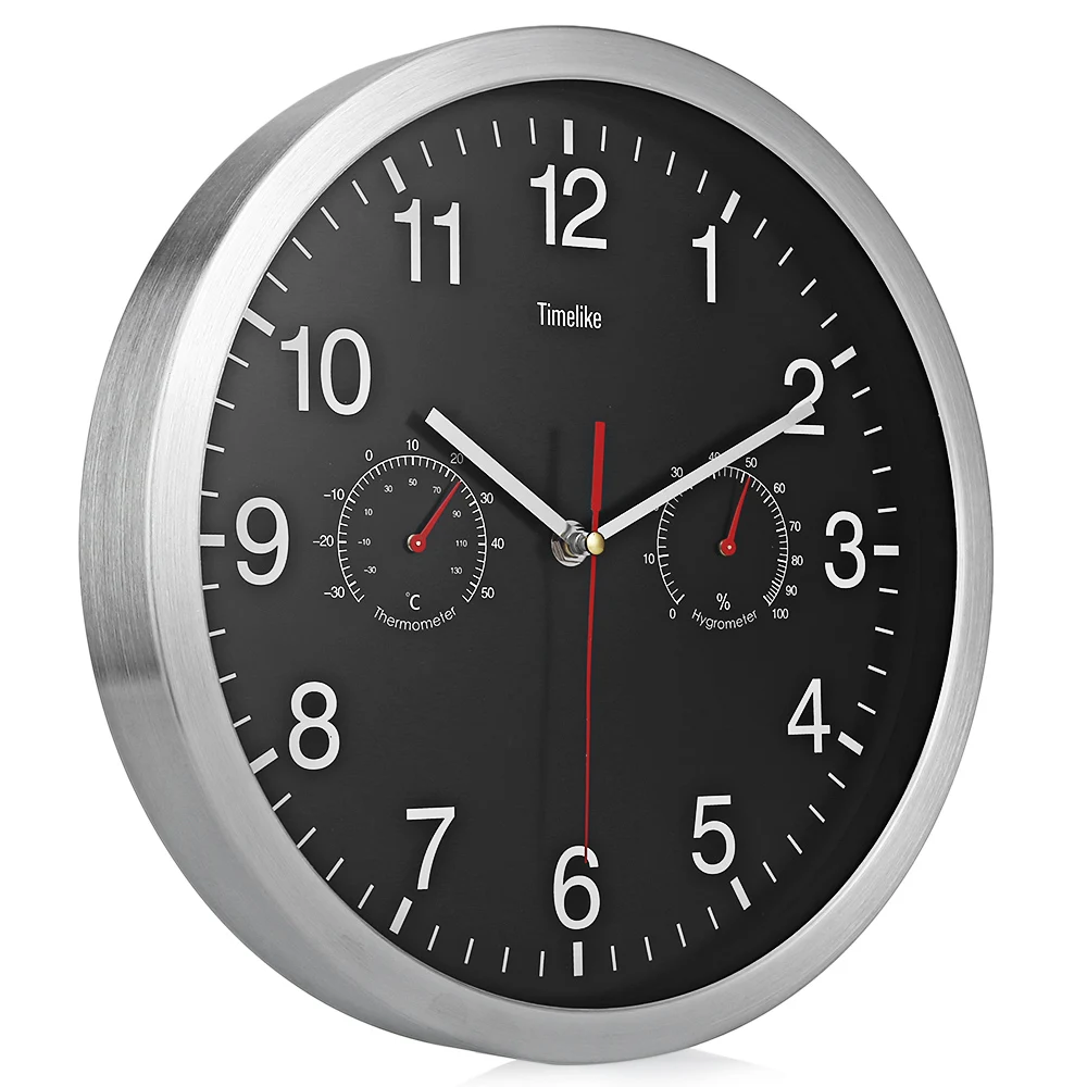 . Comprar Nueva 32 cm cuarzo silencioso Metal Reloj de pared termómetro higrómetro silencioso movimiento de barrido No Ticking reloj casa decoración de arte nuevo diseño Online Baratos.