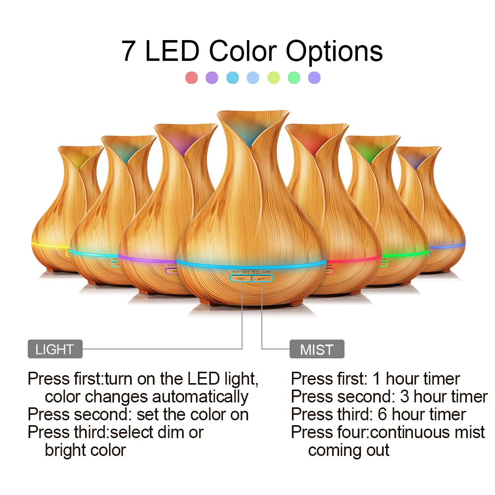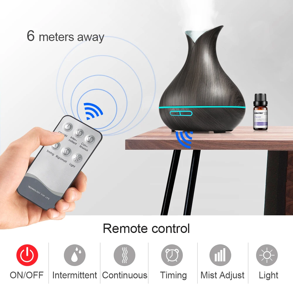 Comprar Control remoto 550 ml Aroma difusor de aceite esencial con grano de madera 7 Color cambio luces LED para oficina inicio Online Baratos