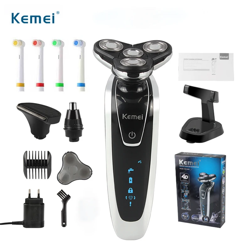 . Comprar Kemei 4 en 1 3D flotante tipo de carga eléctrica afeitadora 4 unidades puede limpiar la afeitadora eléctrica multifuncional cuidado facial Online Baratos.