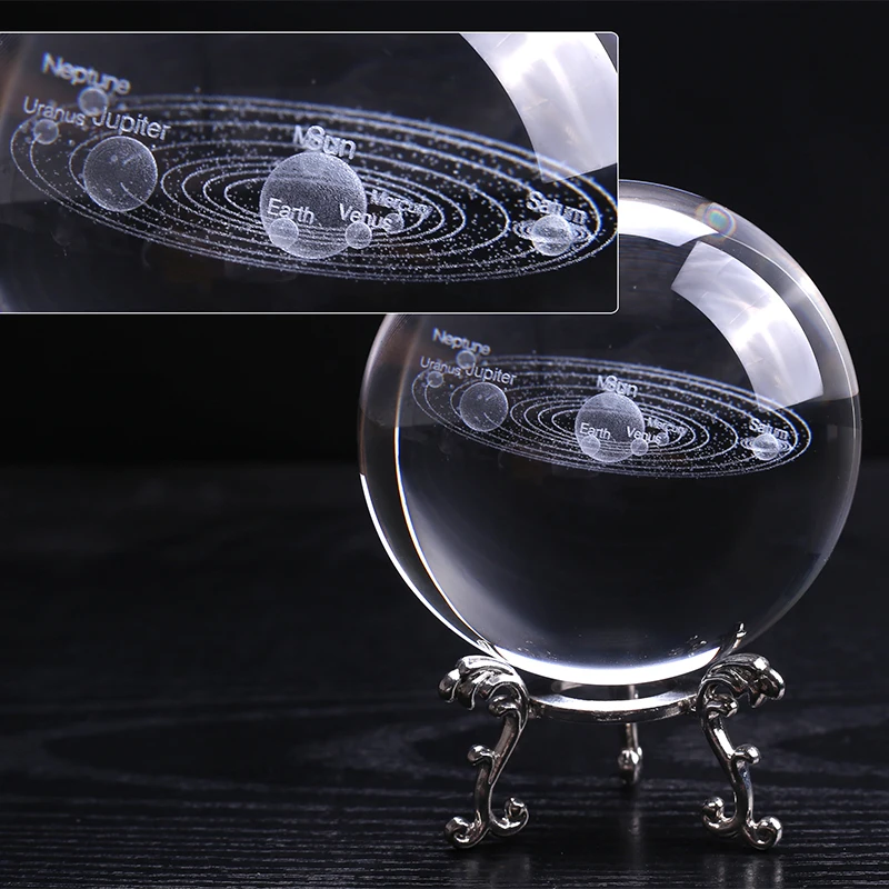 Comprar 3D láser grabado Sistema Solar bola de cristal astronómica esfera de cristal ornamento regalos decoración bola Online Baratos