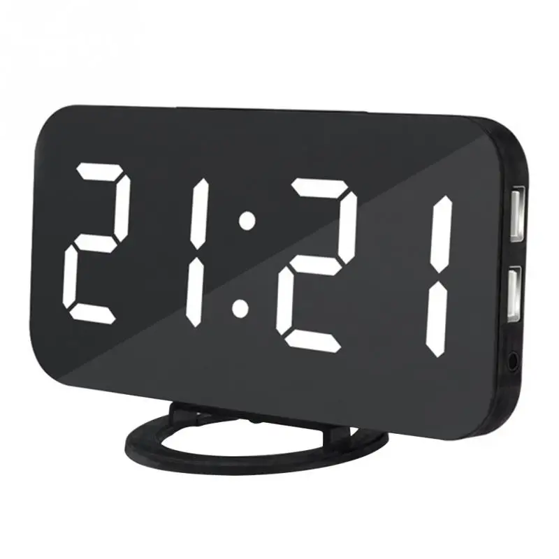 Comprar Lujos espejo 6,5 \"LED pantalla electrónica reloj despertador Digital con atenuador Snooze luz nocturna dormitorio cabecera USB reloj de carga Online Baratos.